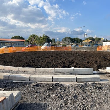 Un passaggio particolarmente delicato dell’intervento è stata la realizzazione di due rotatorie, situate rispettivamente in prossimità dell’uscita autostradale “Paesi Etnei” e lungo Viale Europa a San Gregorio di Catania, due snodi viari attraversati quotidianamente da migliaia di veicoli. La costruzione delle rotatorie è stata eseguita mantenendo sempre attiva la viabilità, attraverso una gestione attenta e continua del traffico, garantendo sicurezza e fluidità della circolazione durante tutte le fasi di cantiere.