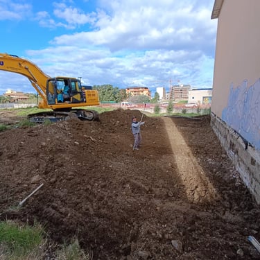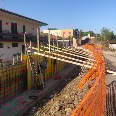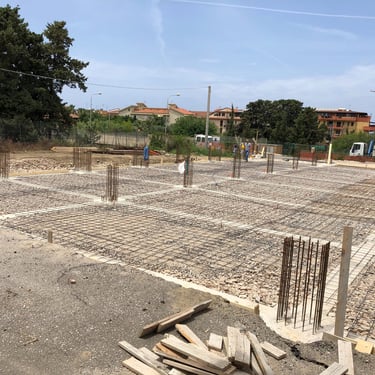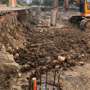 I lavori hanno avuto inizio con le operazioni di scavo e sbancamento del terreno, necessarie alla preparazione dell’area di cantiere e alla realizzazione delle fondazioni. La stabilità dell’edificio è garantita dalla realizzazione di fondazioni profonde con sistema di palificazione, soluzione strutturale adottata per assicurare la corretta distribuzione dei carichi e la massima affidabilità dell’opera nel tempo.